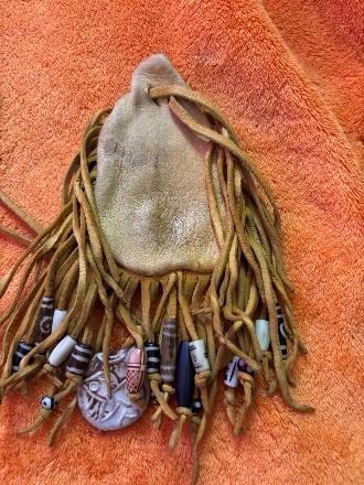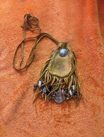 Medicine or Trinket Pouch, DeerskinMeasures 4” x 4” w/fringe 4x7.5” with leather loop strap
