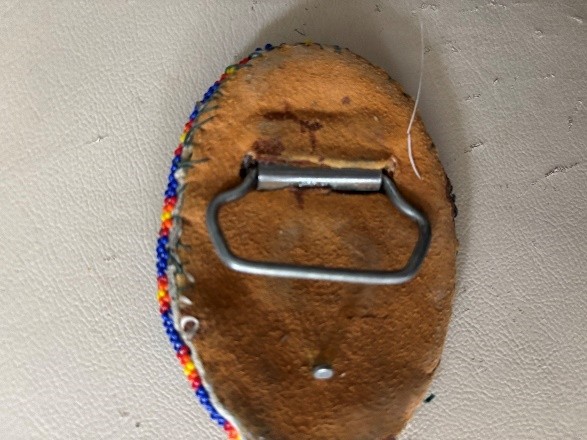 Vintage Native Alaskan Beaded Belt Buckle featuring intricate beadwork and a sturdy leather back. Apx 4” handmade. Given to Brother Harvey as a “thank you for the downtown tour” from a young girl visiting Seattle with her family.